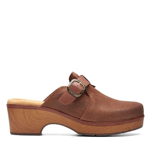 Overall, the Clarks Womens Paizlee Nora offers a stylish take on classic mules & clogs, combining a platform heel, secure buckle closure, and closed-toe design. It is a practical and fashionable choice for everyday wear in dry conditions. The Clarks Womens Paizlee Nora is manufactured by Clarks.