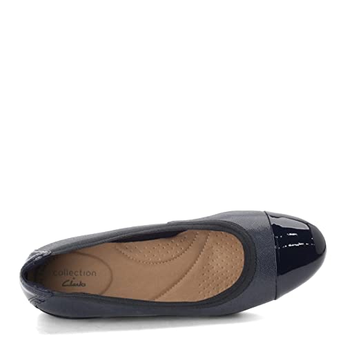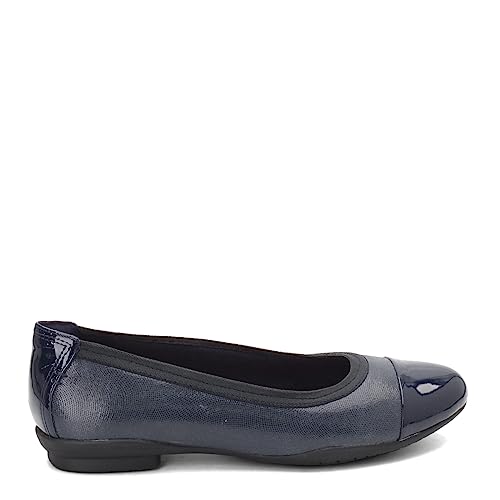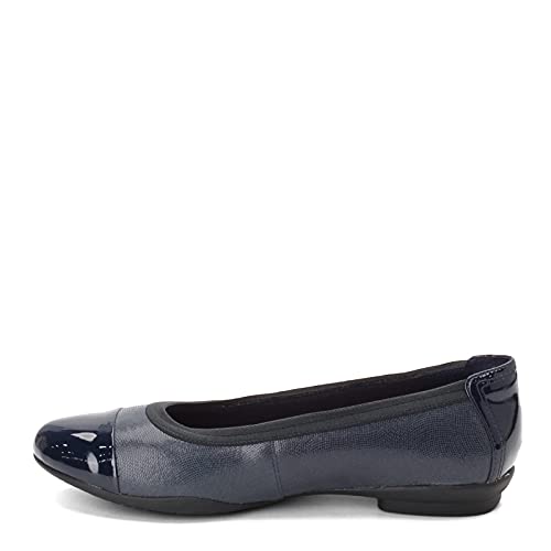 The Clarks Womens Sara OrchidBallet Flat features a premium leather or suede upper that delivers a soft yet durable finish. The solid pattern and refined texture make this shoe easy to pair with work attire, casual denim, and relaxed seasonal outfits. The Navy Leather Combi option adds depth and versatility to autumn wardrobes.