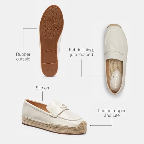 The Coach Women’s Camilla Espadrilles feature a smooth leather upper that delivers a polished and minimalist look. This high‑quality leather not only enhances durability but also adds a luxurious touch that elevates the shoe beyond basic canvas espadrilles. The streamlined silhouette makes it easy to style with a wide range of outfits.