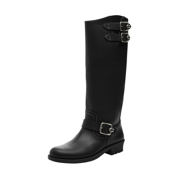 - Leather Upper: Womens Knee-high boots with a 1″ heel, crafted of our heritage smooth leather and featuring buckle accents