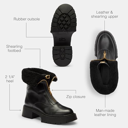 COACH womens Leah Platform Zip Bootie – Cozy Platform Ankle Boots for Cold-Weather Style