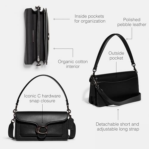 - Editors Notes: A modern take on an archival 1970s Coach design, our structured Tabby shoulder bag is crafted of polished pebble leather & finished with our Signature hardware for an iconic touch