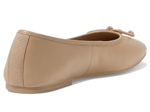 - A square-toe ballet flat features a delicate binding that gracefully encircles the topline, adding a touch of refinement