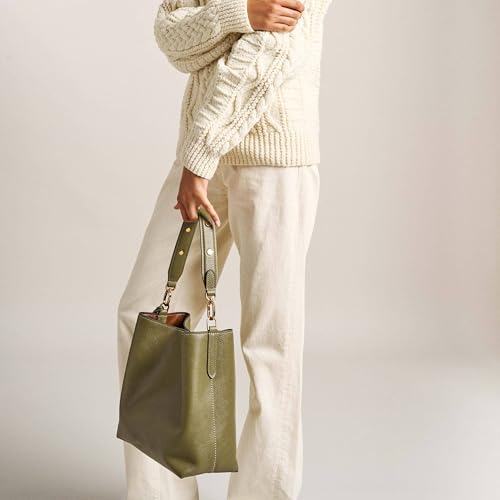 - Exquisite Craftsmanship: Genuine Leather Bucket Shoulder Bag, Magnetic Closure; PU Lining; Imported