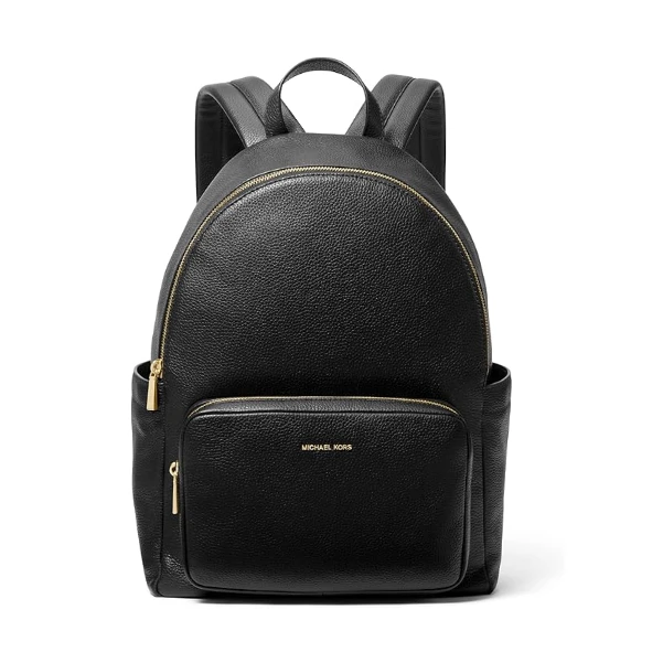 The Michael Kors Tanner Large Backpack Gold-Tone Hardware bridges the gap between fashion and utility. Its sleek black pebbled leather surface pairs effortlessly with a wide range of outfits — from casual jeans and tees to more polished workwear. Whether you’re navigating city streets or boarding a flight, the backpack offers a refined look that never feels out of place.